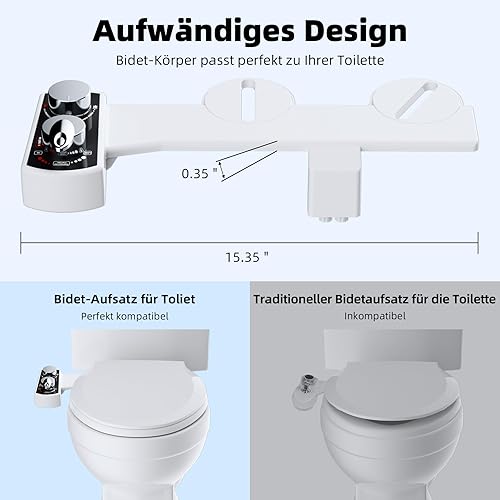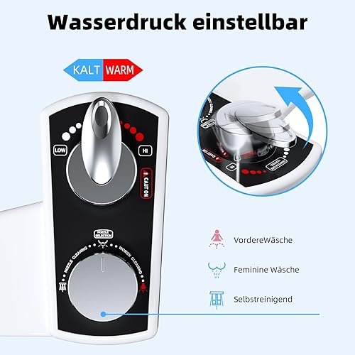Hibbent Bidet Aufsatz für Toilette, Cold/Heiß Water Bidet Dusch-WC,Intimreinigung mit Selbstreinigende Düsen Wasserstrahl regulierbar Po Dusche und Lady-Dusche