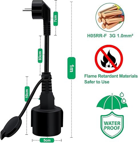 HuaLiSiJi Schuko Verlängerung Kurz 90 Grad Schutzkontakt Verlängerungskabel 16A /250V Kurze Kabel 2 AC für IP44 Steckdose für Außen-Oder Innenbereich, Zuhause, Büro (Grün, 0.3m)