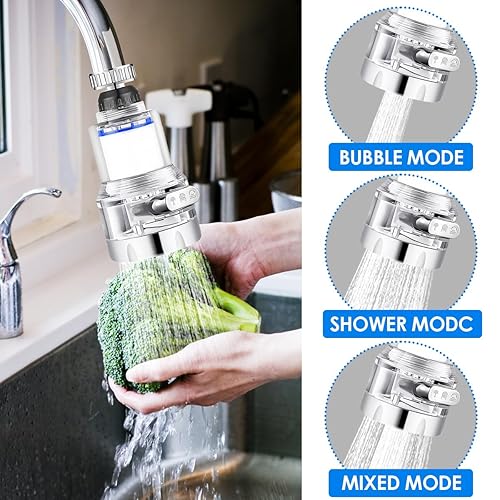 Wasserfilter Wasserhahn Filter 2 Stück Wasserfilter Wiederverwendbare mit extra 6 PP Baumwollfilterelement, 360° Drehbar Tap Water Filter mit 3 Einstellbare Wasserabgabemodi für Küche und Bad