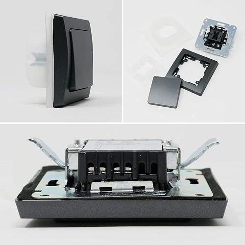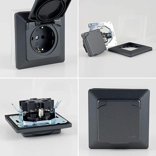 Schalter + Steckdosen Set 'Feuchtraum M', anthrazit, 5-teilig, IP44, Schalterserie Milos, Unterputz