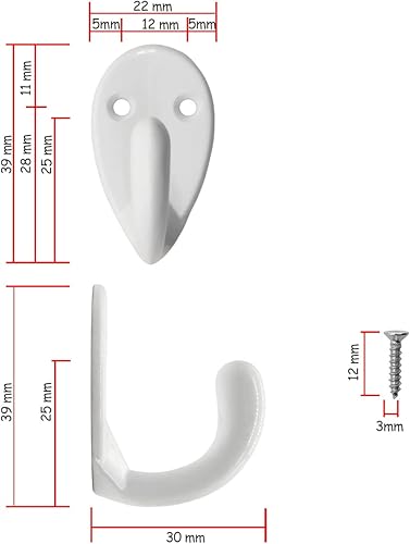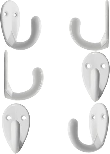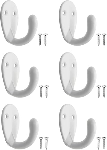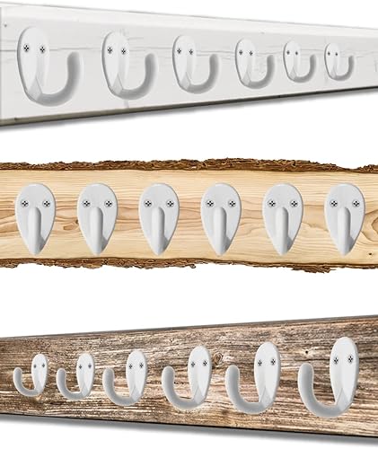 Fuxxer® 6x Klassische Eisen-Haken, Garderoben-Haken, Kleider-Haken, 6er Set, weiß