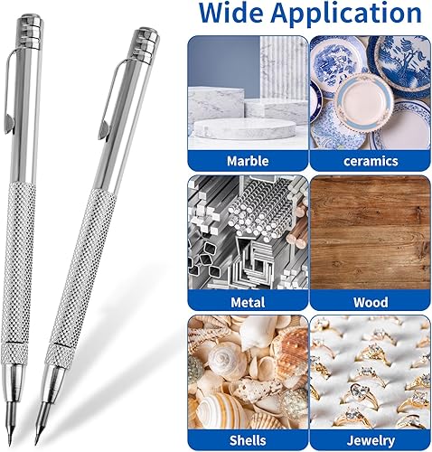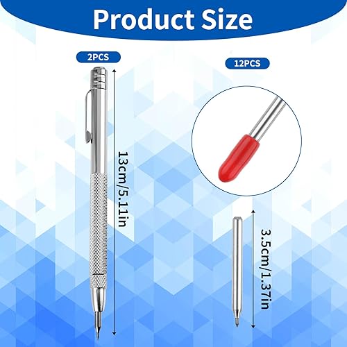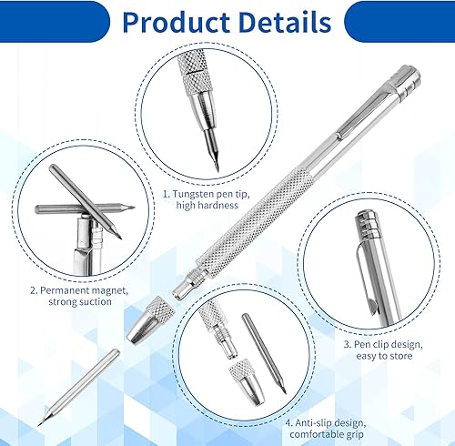 TIESOME Wolframcarbid Stift, 2 Stück Anreißnadel Hartmetall mit Magnet, Anreißwerkzeug mit 12 Ersatz Red Hat Markierspitzen, Reißnadel Diamant für Glas Keramik und gehärteten Silber Carbide Pen