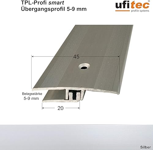 ufitec® Profi Smart Profilsystem für Vinylböden - geeignet für Belagshöhen von 5-9 mm - ALU eloxiert (Treppenkantenprofil | Länge: 100 cm, Silber)