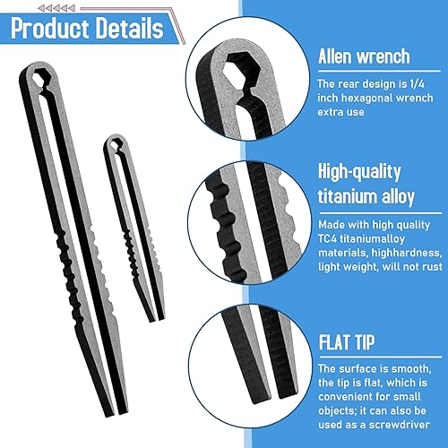 2 Stück Mini-Titanpinzetten, tragbare Titanpinzetten, Reise-EDC-Pinzetten, Legierungspinzetten, Survival-Pick-Up-Pinzetten, tragbare kleine Pinzetten, EDC-Werkzeuge und Gadgets(Schwarz)