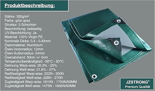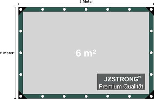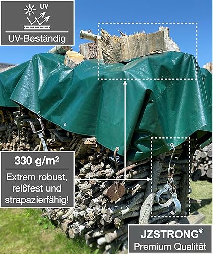 JZSTRONG Abdeckplane 2x3m 330g/m² SuperStark extrem reißfest, grün grau, 100% wasserdicht Gewebeplane UV-stabilisiert Plane mit Ösen im Abstand 50cm Abdeckung für Gartenmöbel Pool Auto Holz LKW Boot