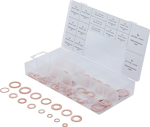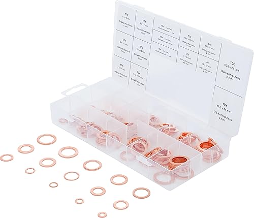 BGS 8142 | Dichtring-Sortiment | 300-tlg. | Kupfer | inkl. Sortimentskasten | Kupferringe | Kupfer-Dichtringe | Unterlegscheiben
