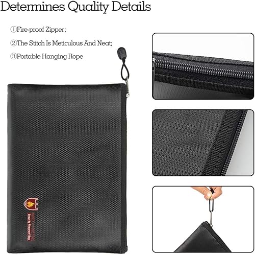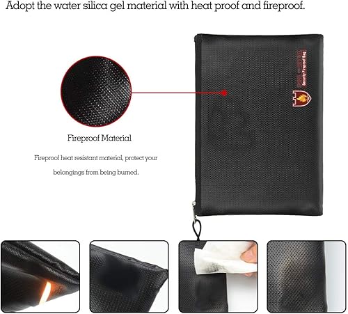 TsunNee Feuerfest Dokumententasche, Wasserdicht Dokumententasche, Lipo Sicher Tasche, Feuer Sicherheit Tasche (Schwarz, 20x29cm)