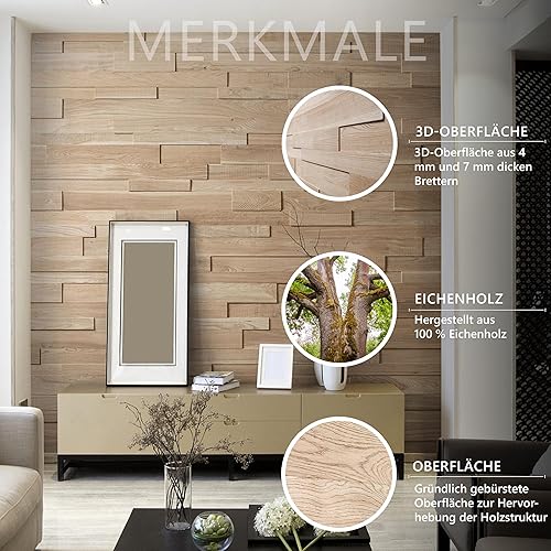Wandverkleidung aus Eiche, 3D Wandpaneele, Wooden Wall Design, model OZO Mini (1m2)