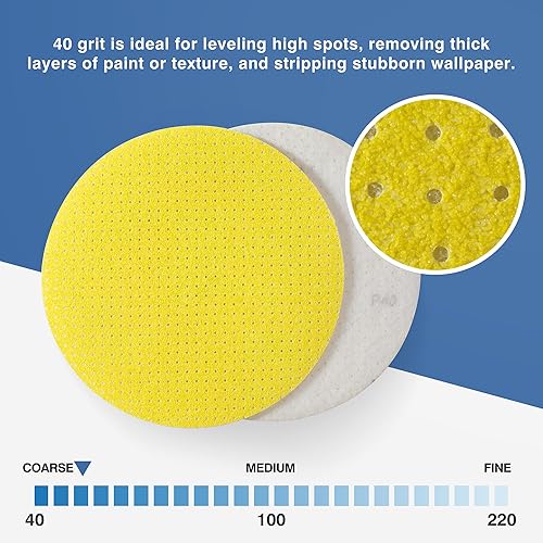 Selead Schleifpapier 225mm Klett Dauerhafte Schleifpads 25 Stück je 5 x Korn 60/80/120/180/220 Schleifscheiben Perforiert Schleifblätter Round f. Trockenbauschleifer Schleifgiraffe Deckenschleifer
