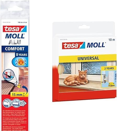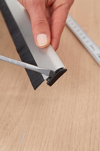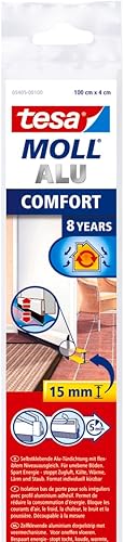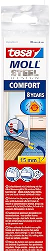 tesa tesamoll Alu COMFORT Türdichtschiene für unebene Böden - Selbstklebende Türdichtung zum Schutz vor Zugluft - mit Bürstendichtung bis 15 mm - Braun
