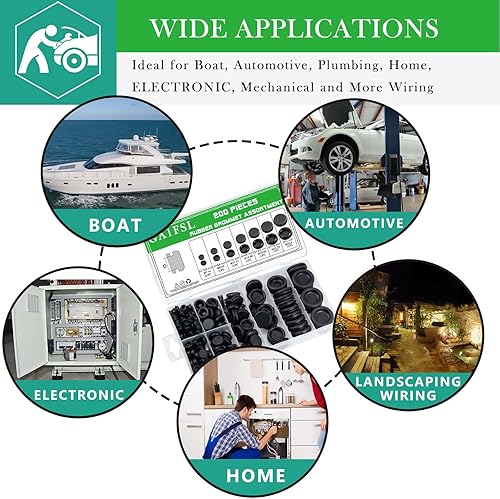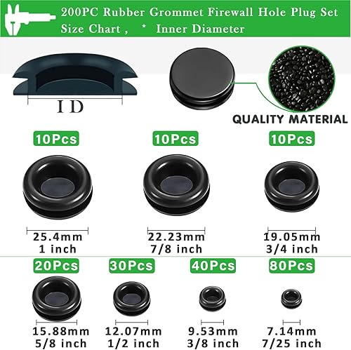 200-tlg. Kabeldurchführung Gummi Blindstopfen Gummitülle Schwarz Karosseriestopfen Gummistopfen für Kabelschutz, Boot, Auto Karosserie, Wohnmobil, Kabelkanal, kfz Kabel (7 Größen)