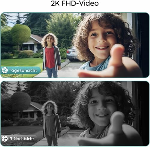 BOIFUN WLAN Video Türklingel mit Kamera (Video Doorbell), 2K-HD-klingel, 2.4G WIFI, Nachtsicht, PIR Personenerkennung, 2-Wege-Audio, Kompatibel mit Alexa, Unterstützt SD & Cloud-Speicher, mit Chime