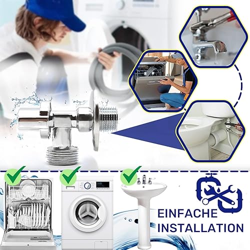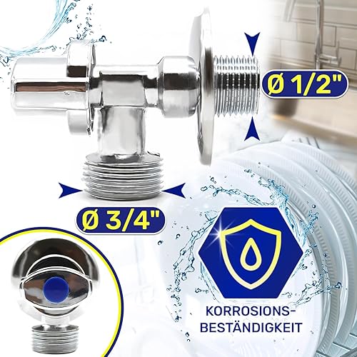 Eckventil 1/2 Zoll x 3/4 Zoll aus Verchromtem Messing für die Wasserversorgung der Waschmaschine Geschirrspülers Waschbeckens Toilette - Garantie 10 Jahre - MONTERAL
