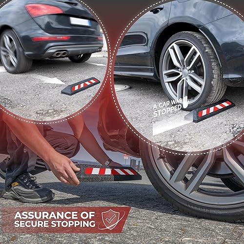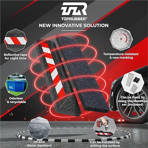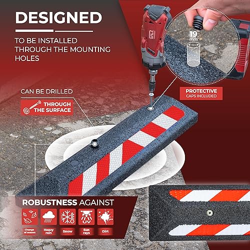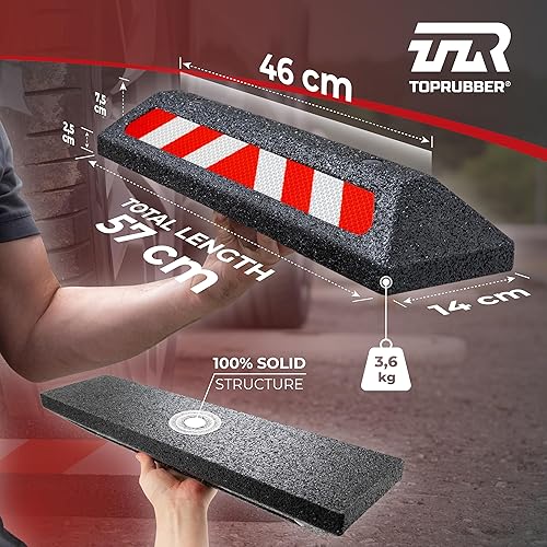 TopRubber® 2X Radstopper in Schwarz, Reflektierend 570x140x75, zum Festschrauben