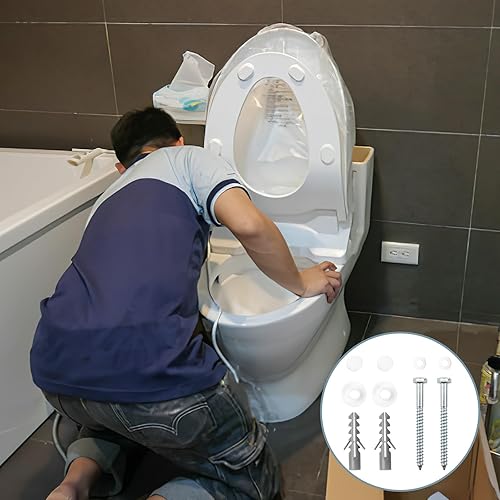 WC Bidet Ankerbolzen Set, WC Befestigungsschrauben Kit Weiße Kappe Toilettenschüssel Boden Befestigungsset mit Kunststoff Unterlegscheiben WC Befestigungsstift für Boden Badezimmer WC WC