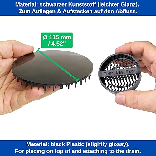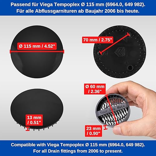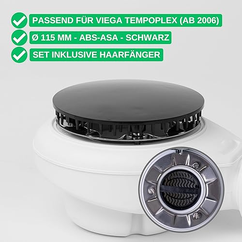 Abdeckhaube für Duschabfluss, Ø 115 mm, kompatibel mit Viega Tempoplex Ablaufgarnitur ab Baujahr 2006, passend für Modell 6964.0, für Ablaufloch Ø 90 mm, schwarzes ABS ASA, Deckel Dusche Abdeckung