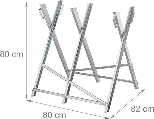 Relaxdays Sägebock, Holzsägearbeiten, klappbar, 150 kg, Sägegestell für Kettensägen, Stahl, HBT: 80 x 80 x 82 cm, Silber