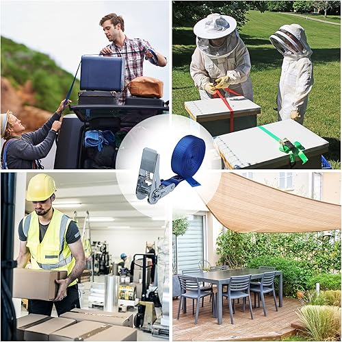 Spanngurt mit Ratsche Zurrgurt 4er Set Ratschengurt DIN EN 12195-2 blau 4 m oder 6 m, 25 mm breit - belastbar bis 800 kg, 4er Pack 2.5 cm x 6 m