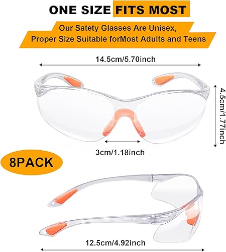 Kigniote Schutzbrille Arbeitsschutzbrille,8 Stück Schutzbrillen Transparent Schutzbrille Labor Sicherheitsbrille Schutzbrille für Arbeit Staubdicht Schießsport für Kinder Herren Damen
