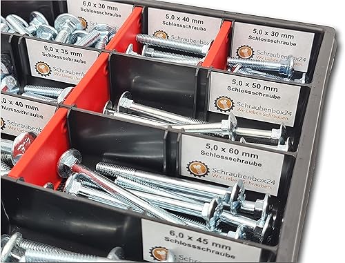 Flachrundschrauben Sortiment M5-M6-M8 // 30mm-60mm 115 tlg. Schraubenbox DIN 603