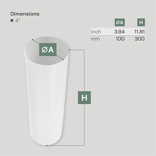 Vent Systems Ø125 mm rundes Lüftungsrohr – 0,5m lang – für Kanalanschluss, Abluftkanal oder Versorgungskanal, Heizungs- und Kühllüftungssystem.