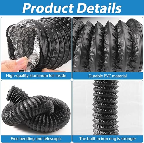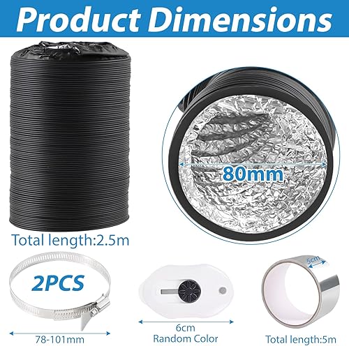 Abluftschlauch PVC Ø80mm 2,5m Lüftungsschlauch Flexibel mit Aluminiumband 50mm x5m und 2 Schlauchschelle Edelstahl Aluminium Abluftrohr für Klimaanlage Wäschetrockner Abzugshaube - Schwarz