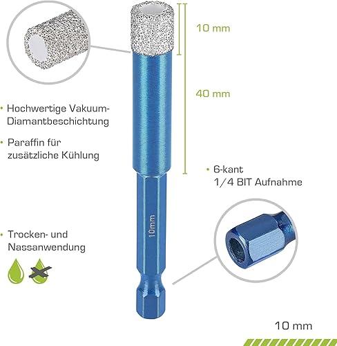 Profi Fliesenbohrer 12mm x M14 - Diamantbohrer für harte Fliesen, Feinsteinzeug uvm. Diamantbohrkrone für Winkelschleifer | rendech® Markenqualität