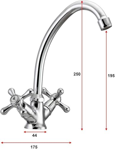 Hydroland Küchen-Armatur RETRO B205 - Messing, Chrom, Metall Quergriff, Retro, Einloch, Deckenmontage, Silber