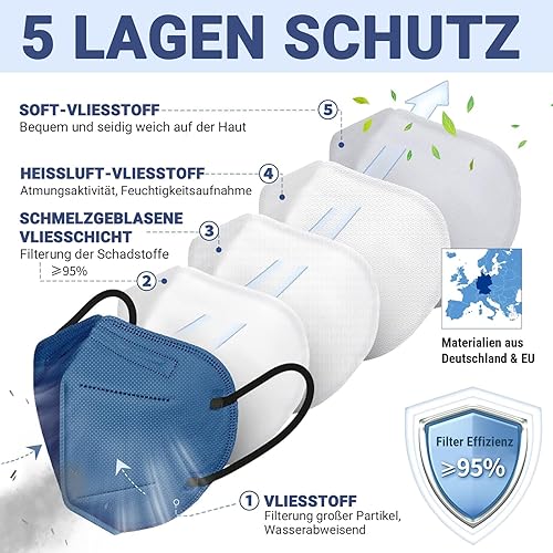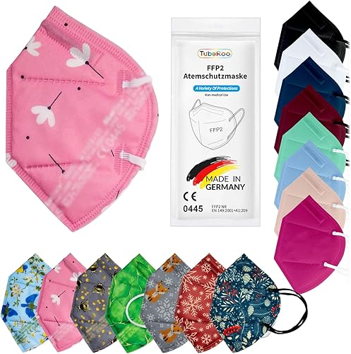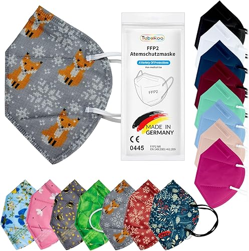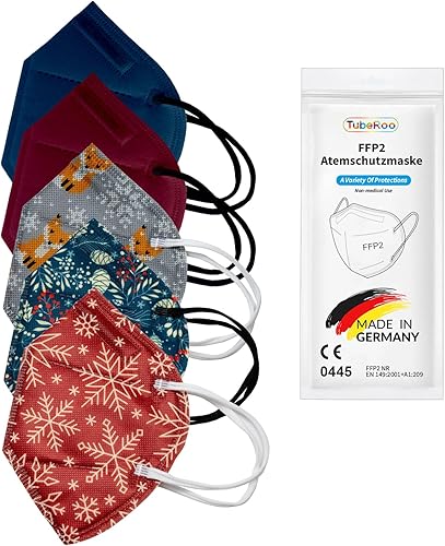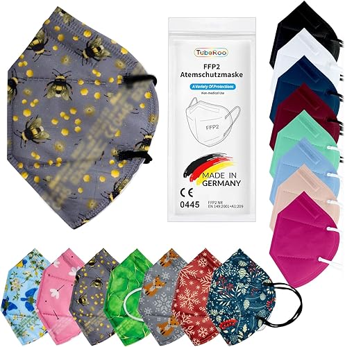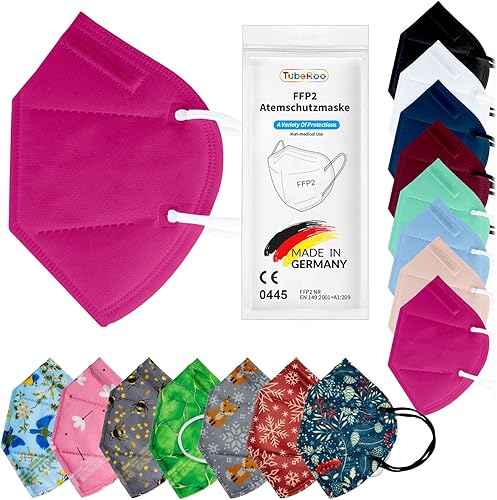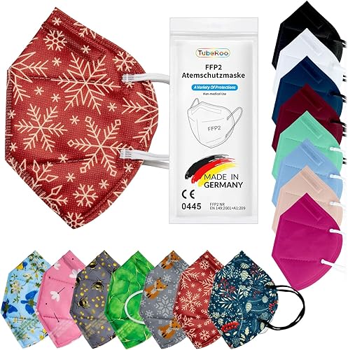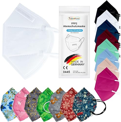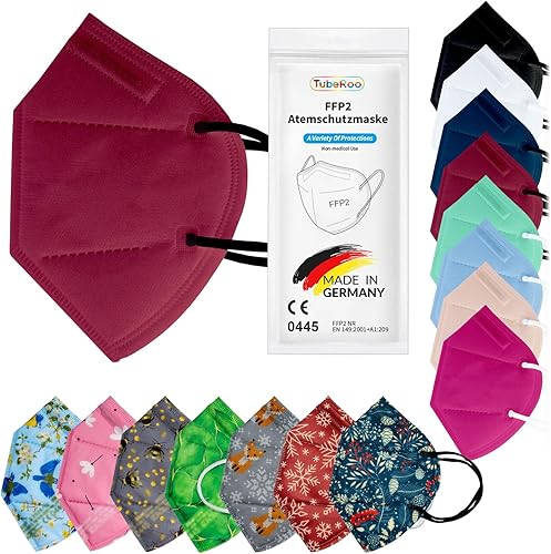 TubeRoo FFP2 Maske 10 Stück Set Masken Motiv Muster in Dunkelblau Blau Bordeaux Hellblau Pink Rot Grün Grau Weiß oder Schwarz, Versand aus Deutschland, Made in Germany, Atemschutzmaske, Mundschutz