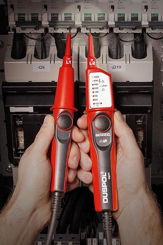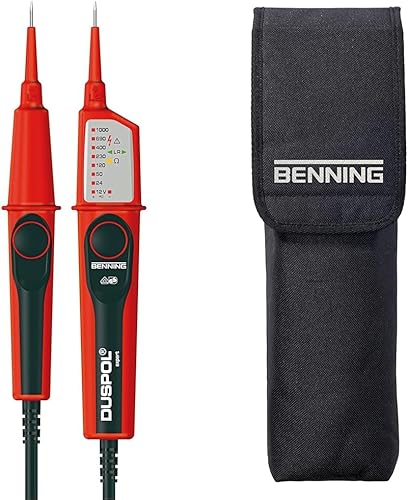 Benning Spannungsprüfer DUSPOL expert (Prüfart 2-polig, Messgerät für Elektrotechnik, Messbereich 12 V - 1000 V AC/DC, Klingenlänge 15 mm) 50262, Rot/Schwarz