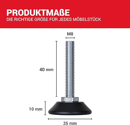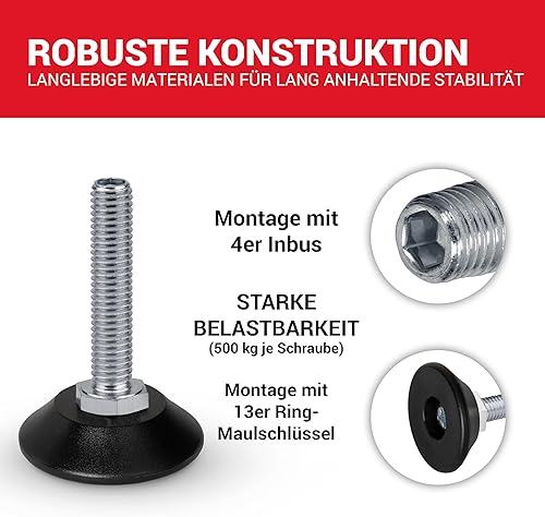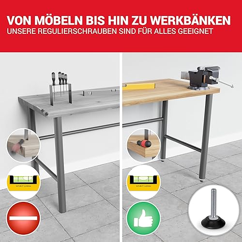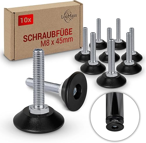 LouMaxx Regulierschraube M10 – Verstellbare Füße M10x30 mm - Nivellierfüße – Maschinenfuß M10 – Stellfuß M10 - Stellschrauben – 10er Set Verstellschraube