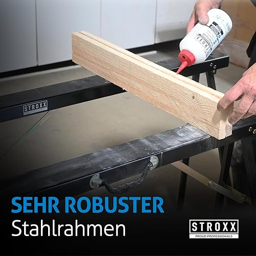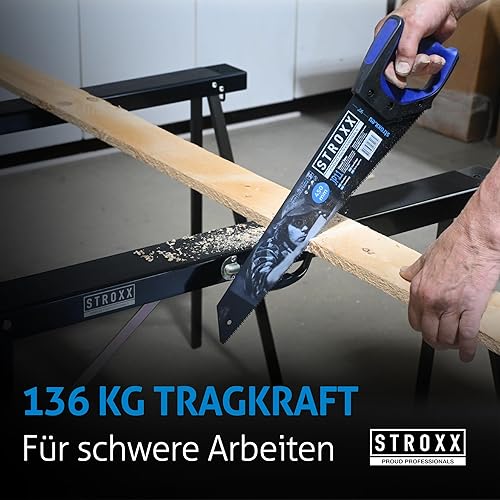 STROXX 4x Arbeitsbock mit 544Kg Tragkraft (136Kg pro Arbeitsbock) - Anti Slip Pad - robuster Stahlrahmen - mit Transportgriff - leicht zusammenklappbar - Werkstattbock - Unterstellbock - Sägebock
