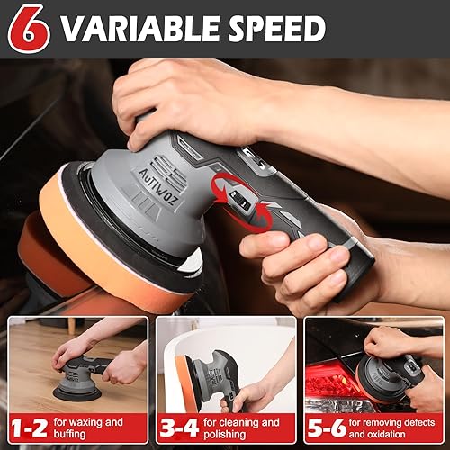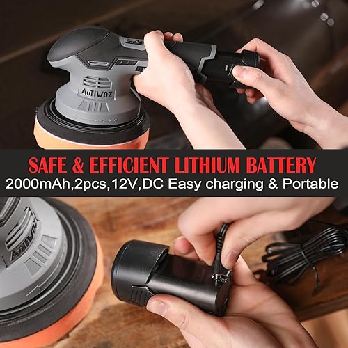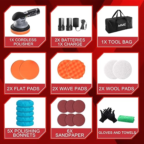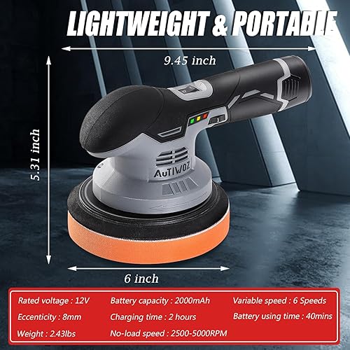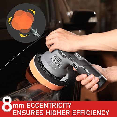 Akku Poliermaschine,AUTIWOZ Exzenter Poliermaschine,Polier Random Orbit 8mm,2 Akkus,Autopoliermaschinen Set,6 Variable Geschwindigkeit,Kabellos Polieren für Auto,150mm Polierteller