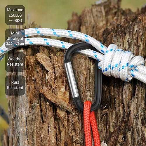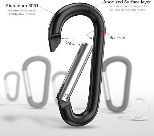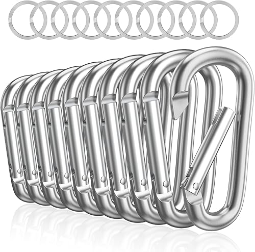 sprookber 3' Aluminium Karabiner D-Ring - karabinerhaken Clips mit Federschnapphaken für Schlüsselanhänger Clip - 10 Stücke