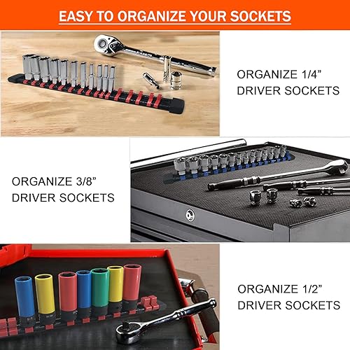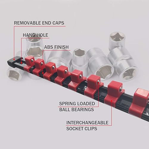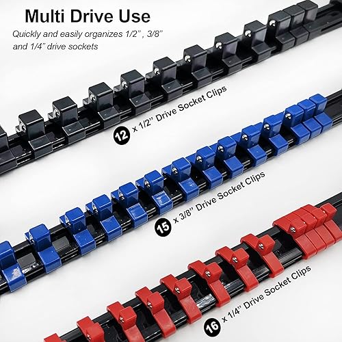 ACEBON 6-tlg Aufsteckschienen-Set für Steckschlüssel-Einsätze | mit 86 Clips | für Einsätze 6,3 mm (1/4'), 10 mm (3/8'), 12,5 mm (1/2'), Steckschlüssel-Organizer