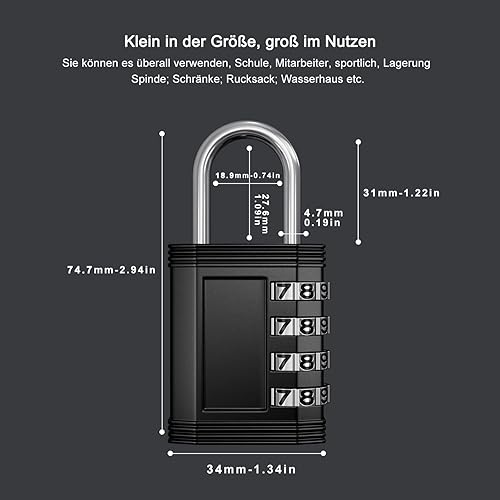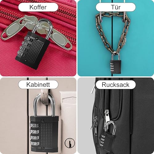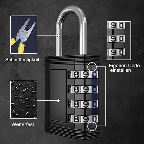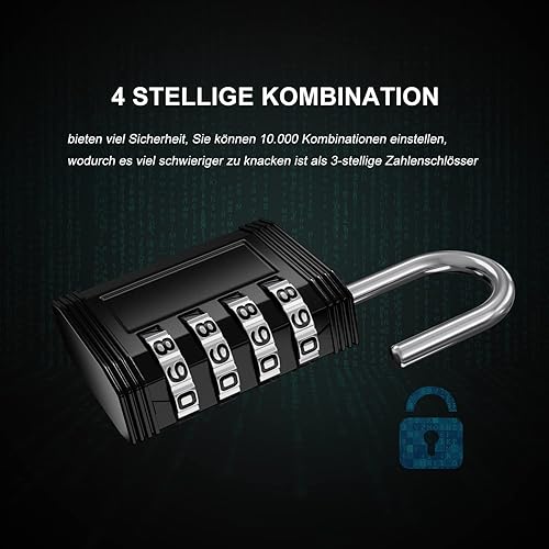 2er Pack 4-Stelliges Zahlenschloss, Diyife Kombinationsschloss Wetterfestes Outdoor-Schließfach Vorhängeschloss für Schulturnhalle, Haspe, Fitnessstudio, Gartenzaun - Schwarz