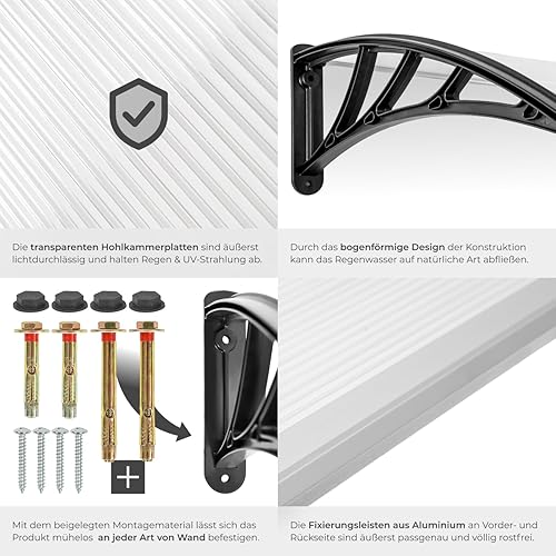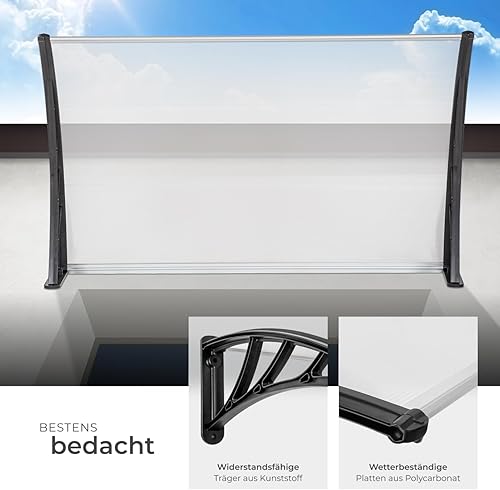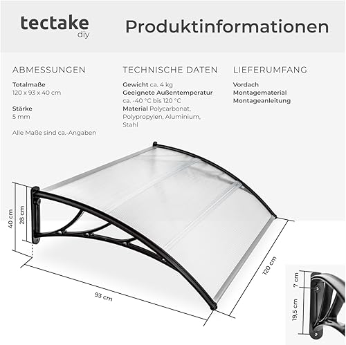 tectake® Vordach Haustür Überdachung Haustürvordach Pultvordach - Diverse Größen - (120x93cm | Nr. 401264)