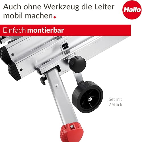 Hailo SafetyLine Transportrollen - Set aus 2 Transport-Rollen für Hailo Sprossenleitern - Rollen aus strapazierfähigem Kunststoff - für komfortablen und sicheren Transport von Hailo Leitern