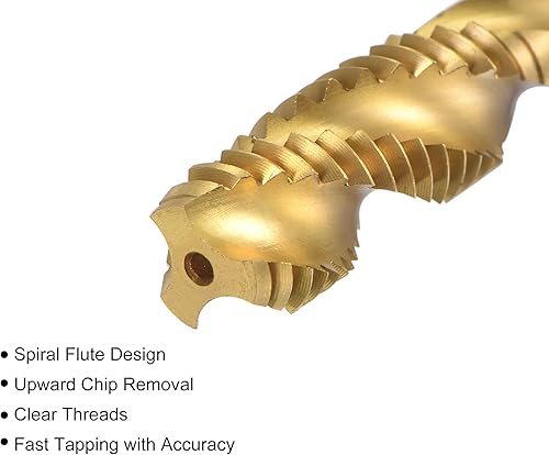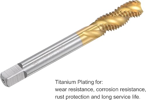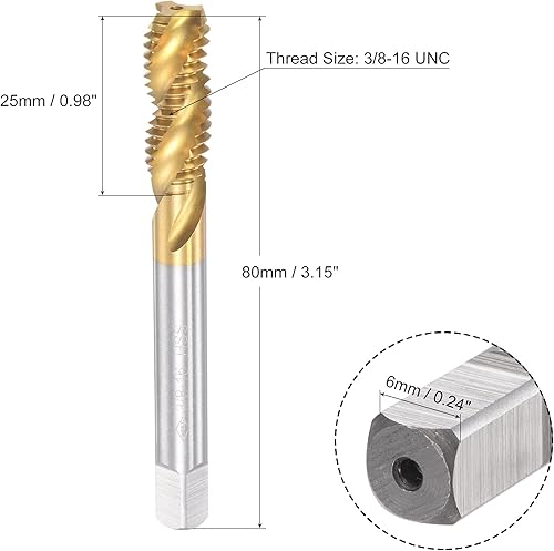 sourcing map Gewindebohrer mit Spiralnut 3/8-16 UNC Schnellarbeitsstahl Titanbeschichteter Maschinengewindebohrer 3 Schneidiges Gewindeschneidwerkzeug H2 Toleranz