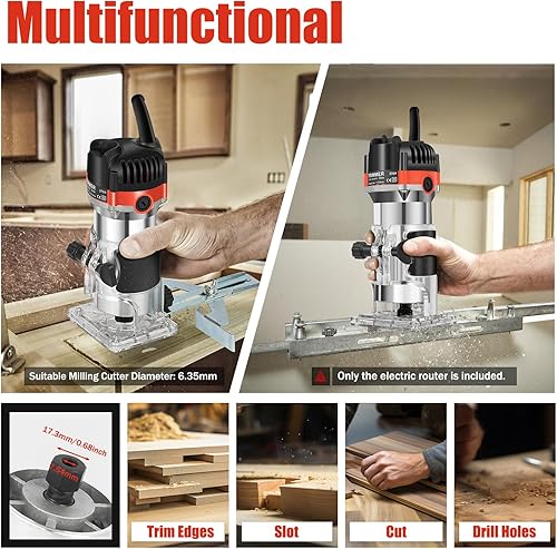 Frederimo Electric Hand Holz Oberfräse, 220V 800W Kantenfräse Multifunktionsfräse, 30000r/Min Rand Fräsmaschine Holzbearbeitung Trimmer, fur Holzverarbeitung, Möbelherstellung