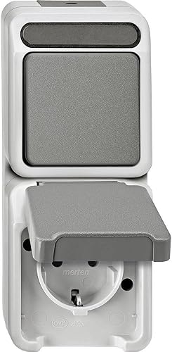 Schneider Electric Merten MEG3495-8029 Aufputz Kombination SCHUKO-Steckdose/Wechselschalter, lichtgrau, AQUASTAR Merten
