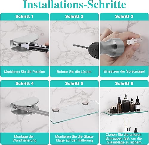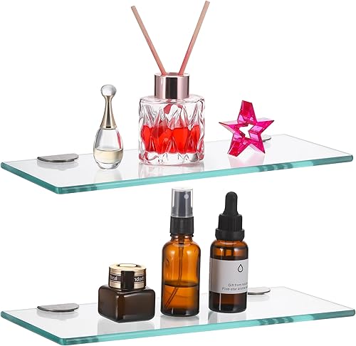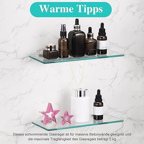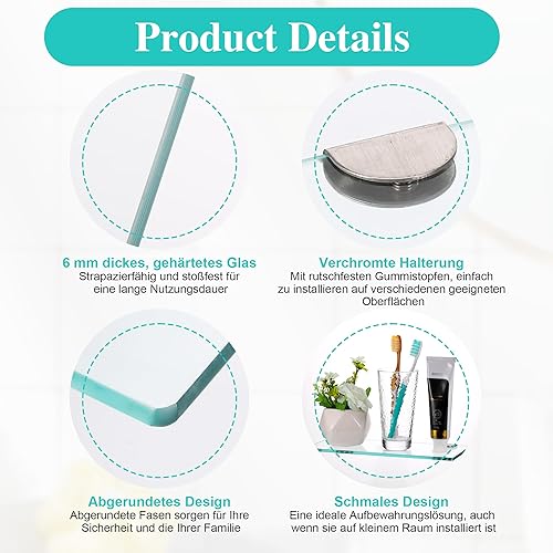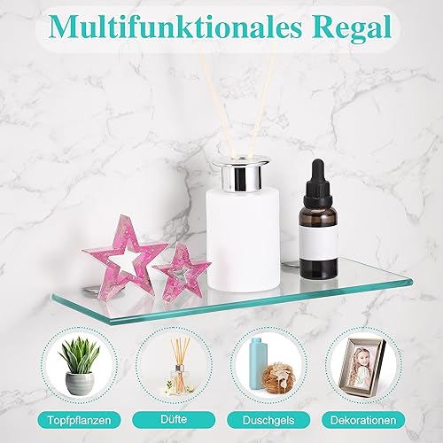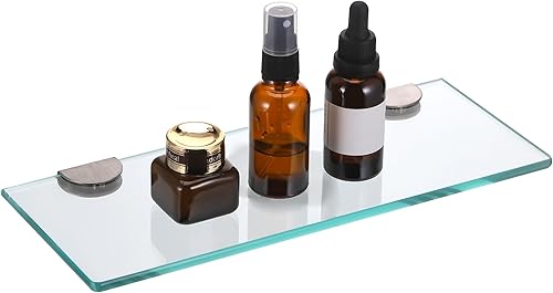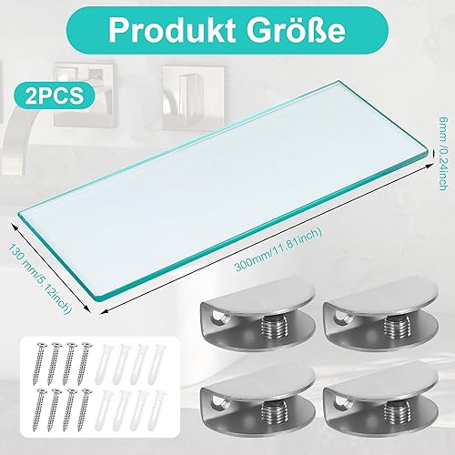 JIZZU 1Stück 30 x 13cm Glasregal Badezimmer, Glas Bad-Regal Wandregal mit 6mm Dickem Sicherheitsglas und Halterung, Glasregal Bad mit Abgerundeten Ecken, Glasregal für Badezimmer, Schlafzimmer, Küche