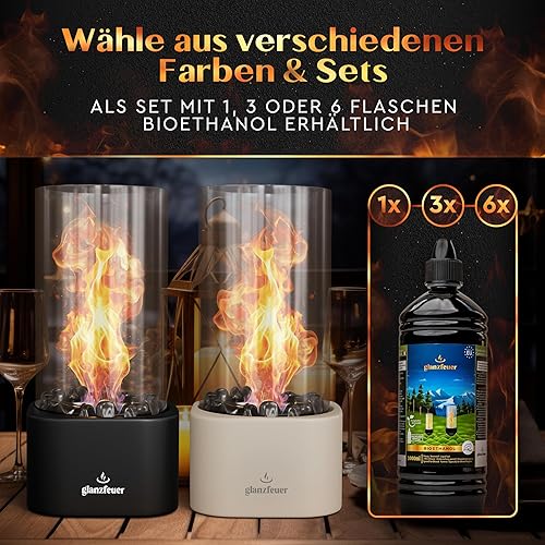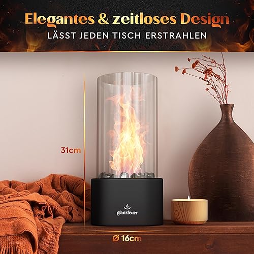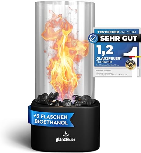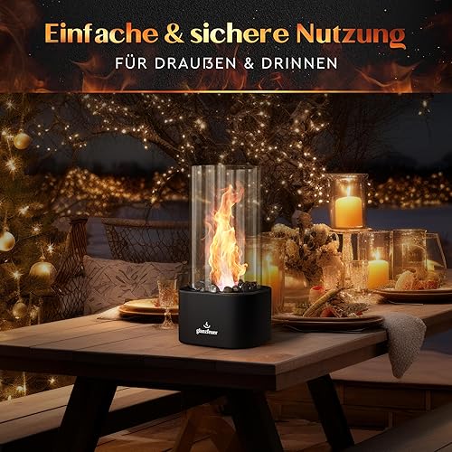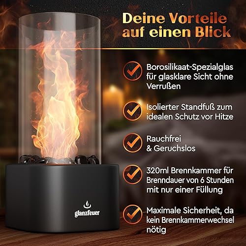 GLANZFEUER® Tischkamin - Premium Bio Ethanol Tischkamin - Tischfeuer Outdoor & Tischfeuer Indoor - Hochwertiger Bioethanol Tischkamin Outdoor für besonderes Ambiente - Tisch Feuer Ethanol Kamin