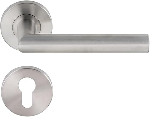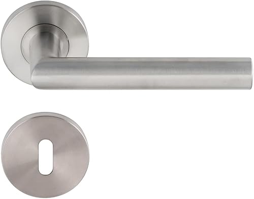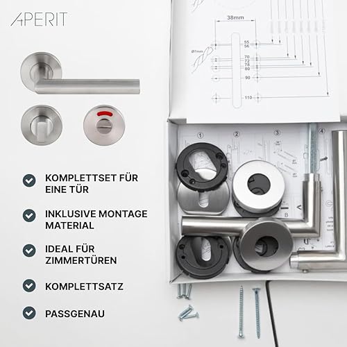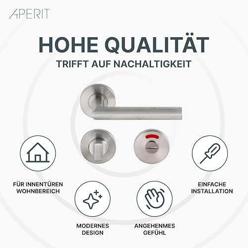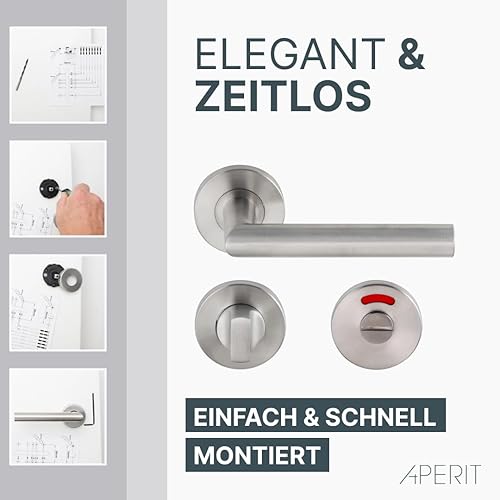 Aperit 49.203.03 Türgriffe: Profi Türbeschlag T-Modell - EN1906 Klasse 3 - Türklinken Paar mit WC Verriegelung - Drückergarnitur/Türdrücker für innentüren, rund, Edelstahl matt