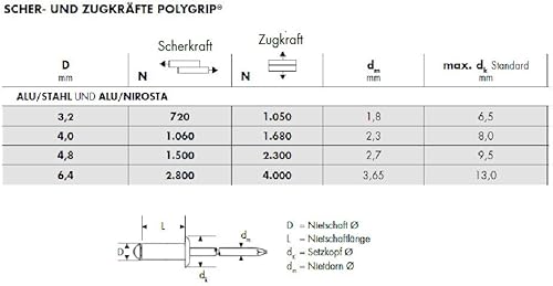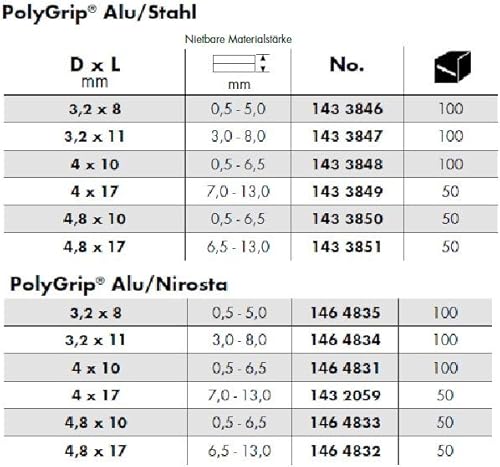 GESIPA | 100x Edelstahl (VA) - Blindnieten Ø 4,0 x 10,0mm PolyGrip® | Für Materialstärke: 0,5-6,5mm | Nieten in Industrie-Qualität | Kaufe Hohlnieten von den Profis