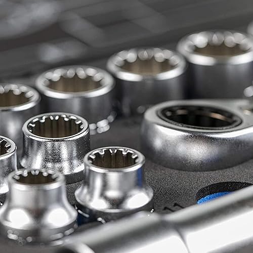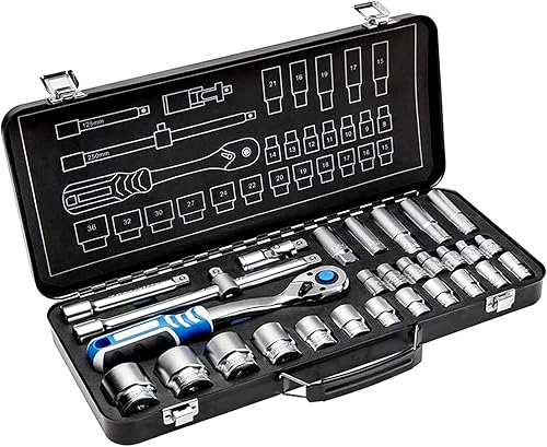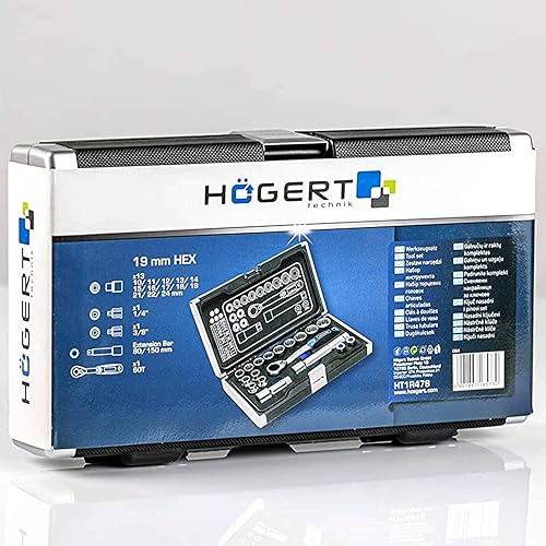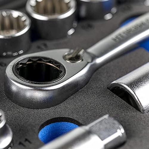 Högert Technik - Werkzeugset I Steckschlüssel, Bits und Ausstattung 1/4” I Legiertem Chrom-Vanadium-Stahl I Gesenkgeschmiedet I Ratschenmechanik mit 72 Sperrklinken I HT1R462-38-tlg