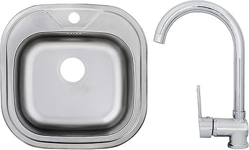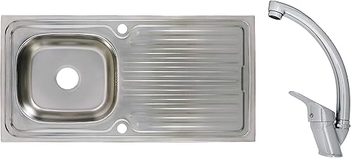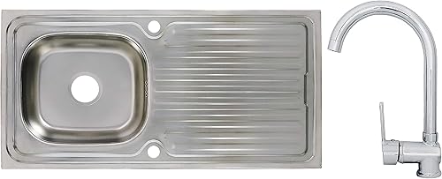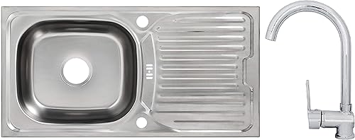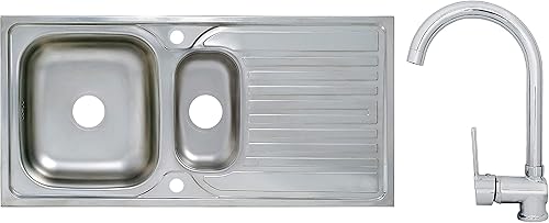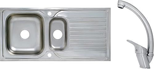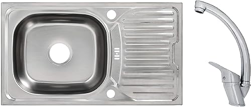 Edelstahlspüle Einbauspüle Sets mit verschiedenen Hochdruck Armaturen 1 1,5 oder 2 Becken Spülbecken Spüle Küchenspüle rechteckig oval oder rund (86 x 43,5 cm + Ruby Armatur)