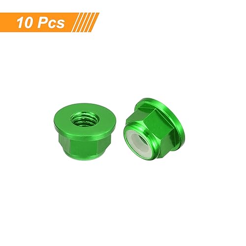 QUARKZMAN 10Stk Nylon Einsatz Sechskant Sperre Muttern - M4x0.7mm Aluminum Legierung Selbstsichernde Mutter Eloxieren Flansch Sicherungsmutter für Befestigungsmittel (Grün)