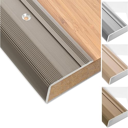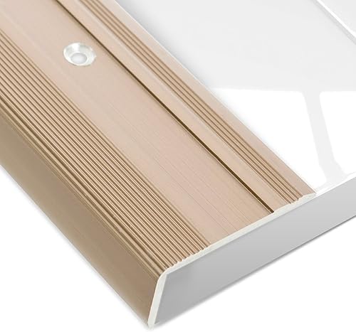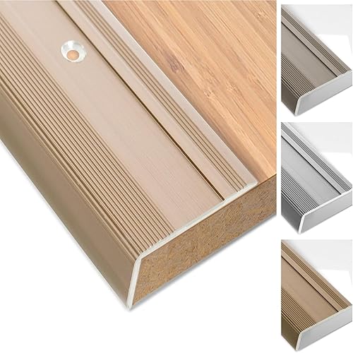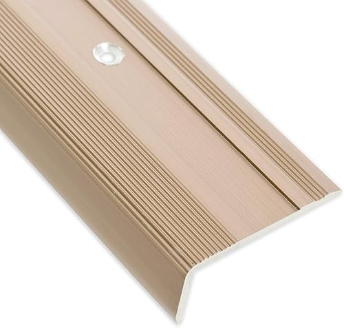 Floordirekt Treppenkantenprofil aus Aluminium 100cm lang 1 Stück inkl. Schrauben und Dübeln | Stufenkantenprofil Vorgebohrt in L-Form | Winkelprofil 37mm Breite x 17 mm Höhe (Gold) Glory