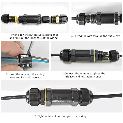 SPORWAY Kabelverbinder Wasserdicht IP68, 4 Stück Verbindungsmuffe Erdkabel Verbindungsbox für Ø4-14 mm Kabeldurchmesser, 5-polig Abzweigdose Außen Wasserdicht Kabelverbinder